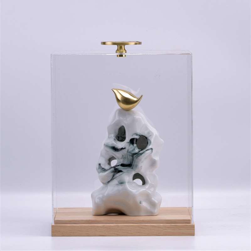 新中式太湖石铜鸟实木底座酒店会场展览会软装样板房间装饰品摆件热门设计联盟服务商