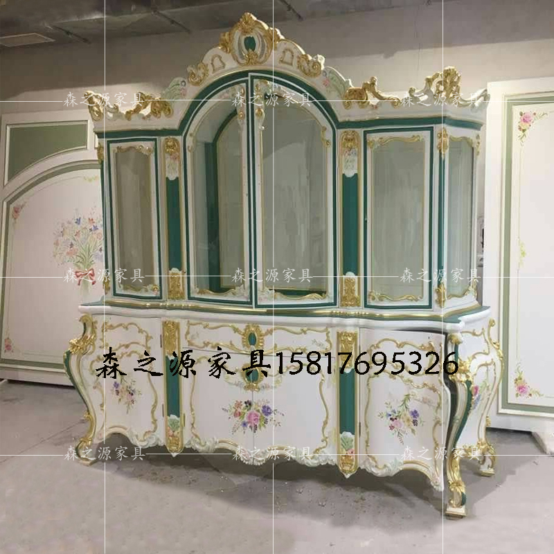 森之源 意大利实木酒柜法式巴洛克彩绘装饰柜金箔玻璃展示柜酒柜热门设计联盟服务商