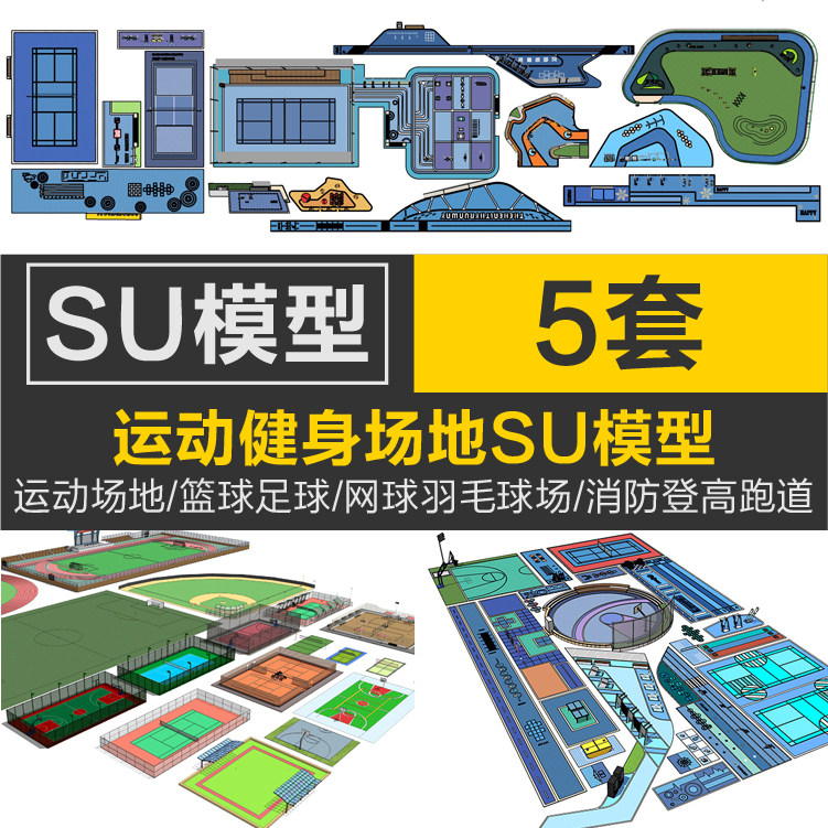 体育运动健身场地篮球足球网球羽毛球场消防登高面跑道草图SU模型热门设计联盟服务商