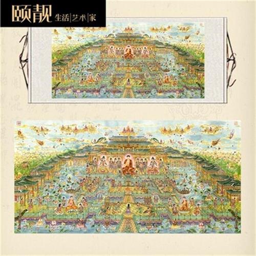 丝绸挂全景卷轴装裱画佛堂画画西方图寺庙已供奉横幅佛像极乐热门设计联盟服务商