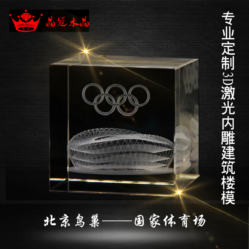 水晶鸟巢摆件国家体育馆中心建筑模型水晶内雕鸟巢水晶纪念品热门设计联盟服务商