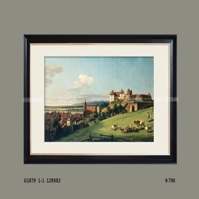 风景草原房屋大树美式客厅沙发背景书房玄关装饰画横幅有框画挂画热门设计联盟服务商