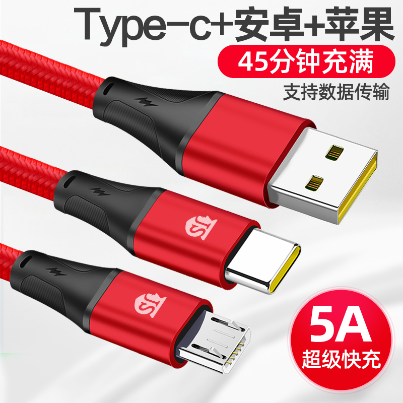 二合一安卓数据线5A超级快充Type-c一拖二适用于华为vivo小米OPPO热门设计联盟服务商