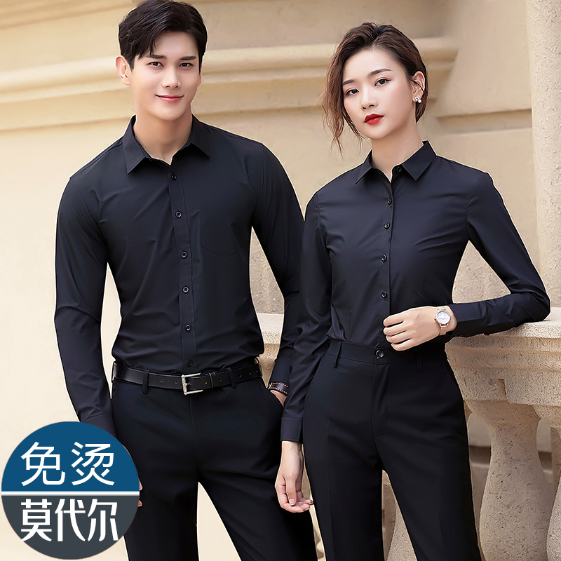 黑色衬衫男方领长袖职业商务正装美发店酒吧服务员工作服套装衬衣热门设计联盟服务商