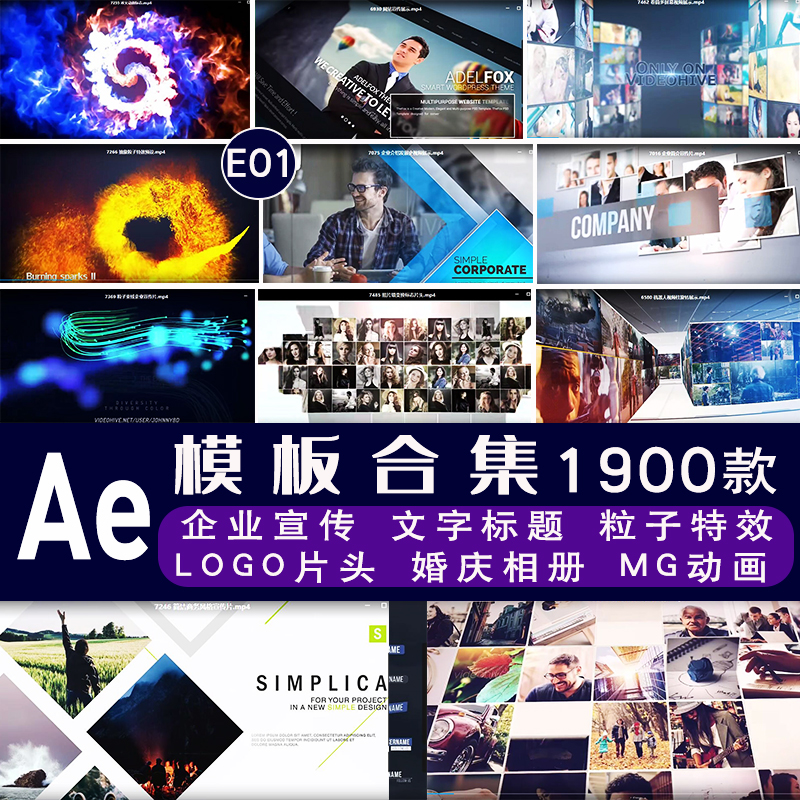 Ae模板素材合集片头开场企业宣传粒子特效婚礼电子相册文字效果热门设计联盟服务商
