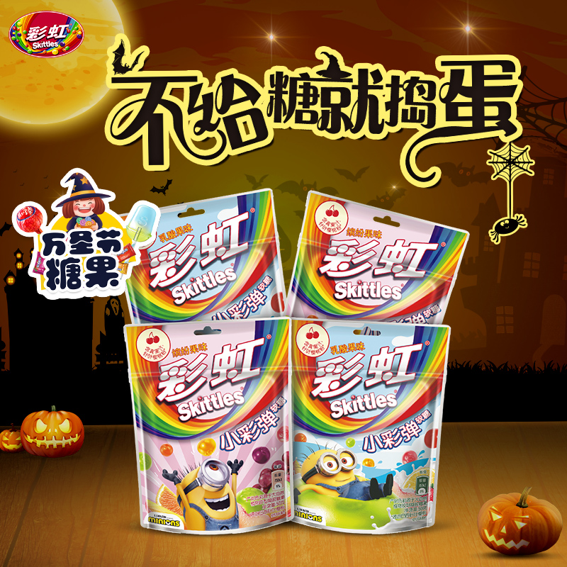 彩虹糖新品小彩软糖2口味4袋装万圣节帖水果橡皮帖零食QQ糖热门设计联盟服务商
