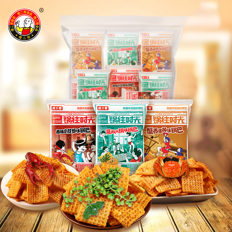 傻二哥蟹黄花椒锅巴网红零食小吃休闲食品散称老式怀旧办公室解馋热门设计联盟服务商