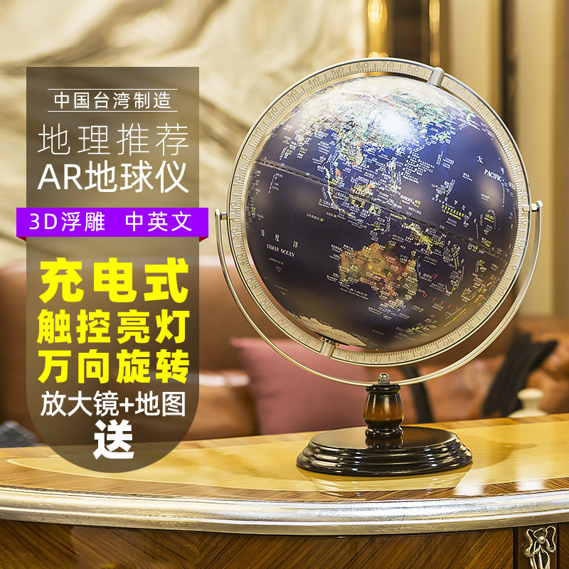 funglobe地球仪32cm台湾制造小学生用初中生AR智能3d凹凸立体悬浮浮雕家居摆设摆件办公室灯台灯儿童启蒙高端热门设计联盟服务商