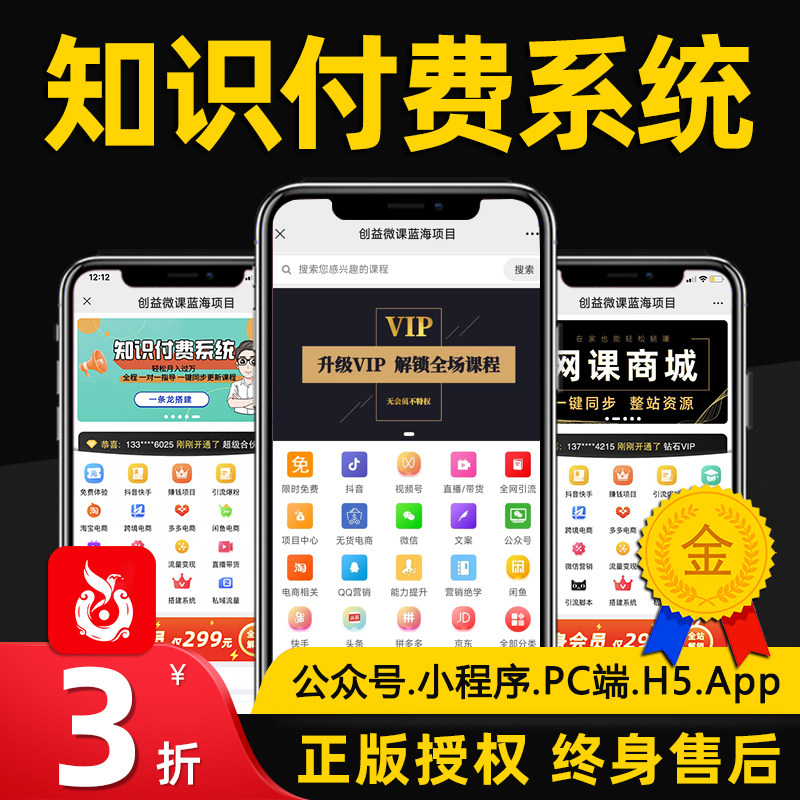 知识付费搭建教育平台微课课堂小程序在线网校直播公众号平台开发热门设计联盟服务商