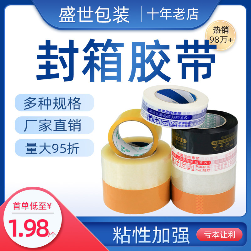 透明封箱胶带黄包装胶纸胶布淘宝专用警示语打包封口快递胶带批发热门设计联盟服务商