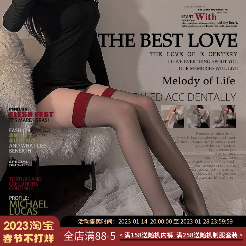 黑色ins网红性感红色边拼接性感大腿丝袜薄款黑丝纯欲长筒过膝袜热门设计联盟服务商