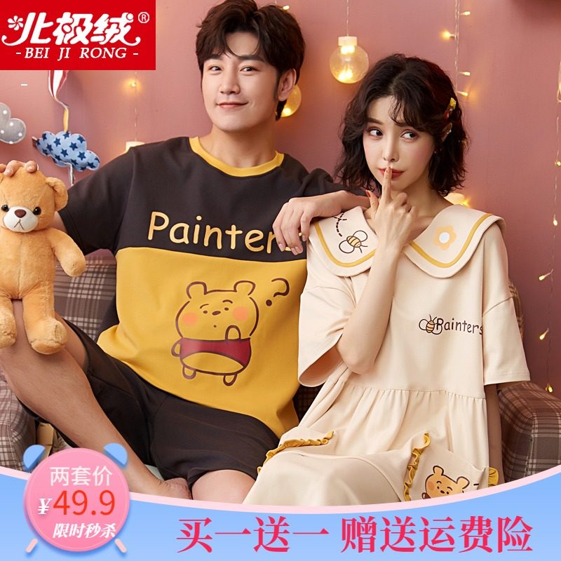 北极绒情侣夏季睡衣短裤短袖薄款睡裙卡通可爱男士全棉家居服套装热门设计联盟服务商