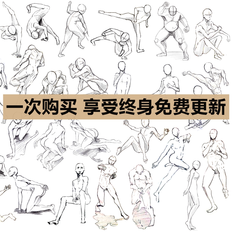 Pixiv人体动态线稿造型姿势卡通动漫画CG手绘画参考速写美术素材热门设计联盟服务商