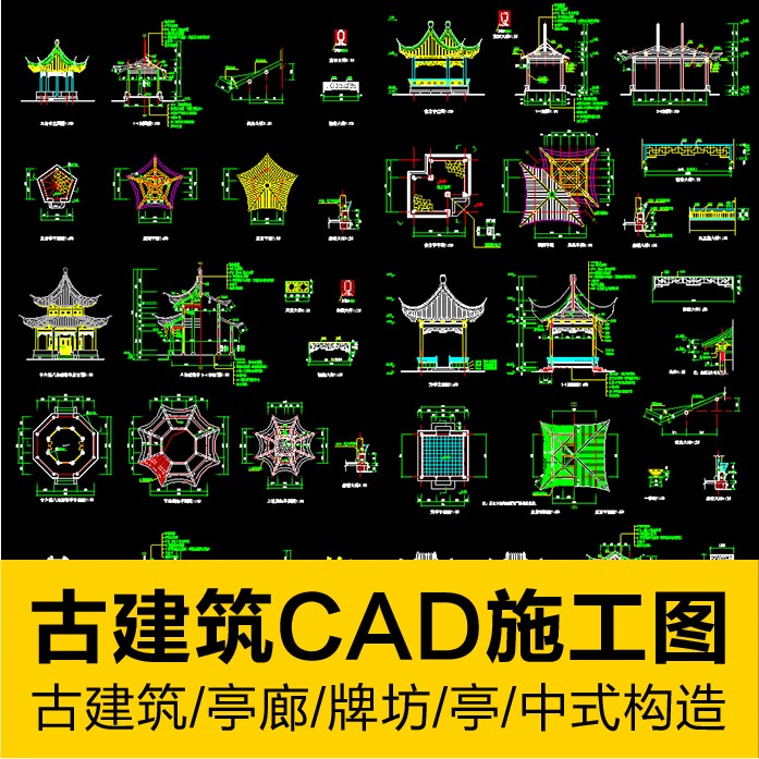 古典中式建筑CAD施工图库平面图块仿古亭子廊架牌坊景观园林素材热门设计联盟服务商