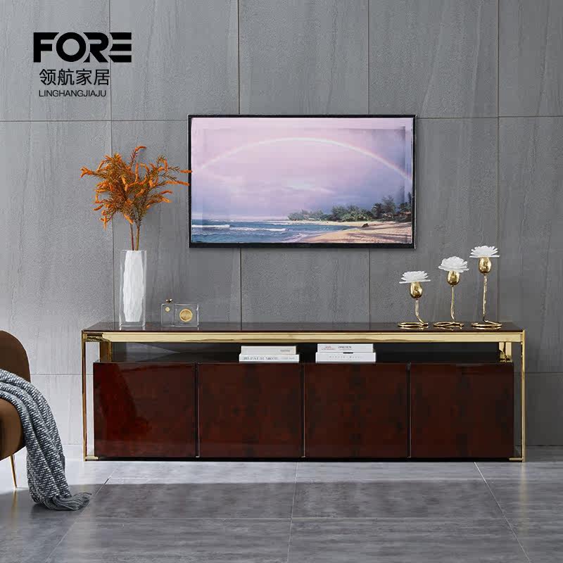 别墅家具轻奢电视柜实木港式客厅地柜小户型矮柜设计师样板间定制热门设计联盟服务商