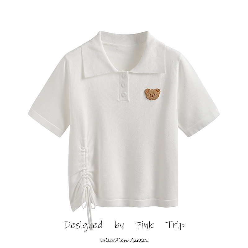 抽绳系带小心机设计感上衣女夏季宽松短款翻领短袖T恤小熊polo衫热门设计联盟服务商