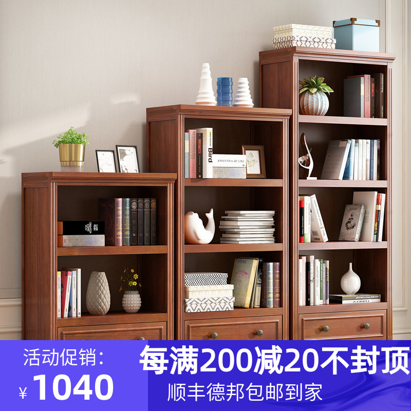 美式实木书柜家用置物柜书房书架组合落地置物架展示柜储物柜整装热门设计联盟服务商
