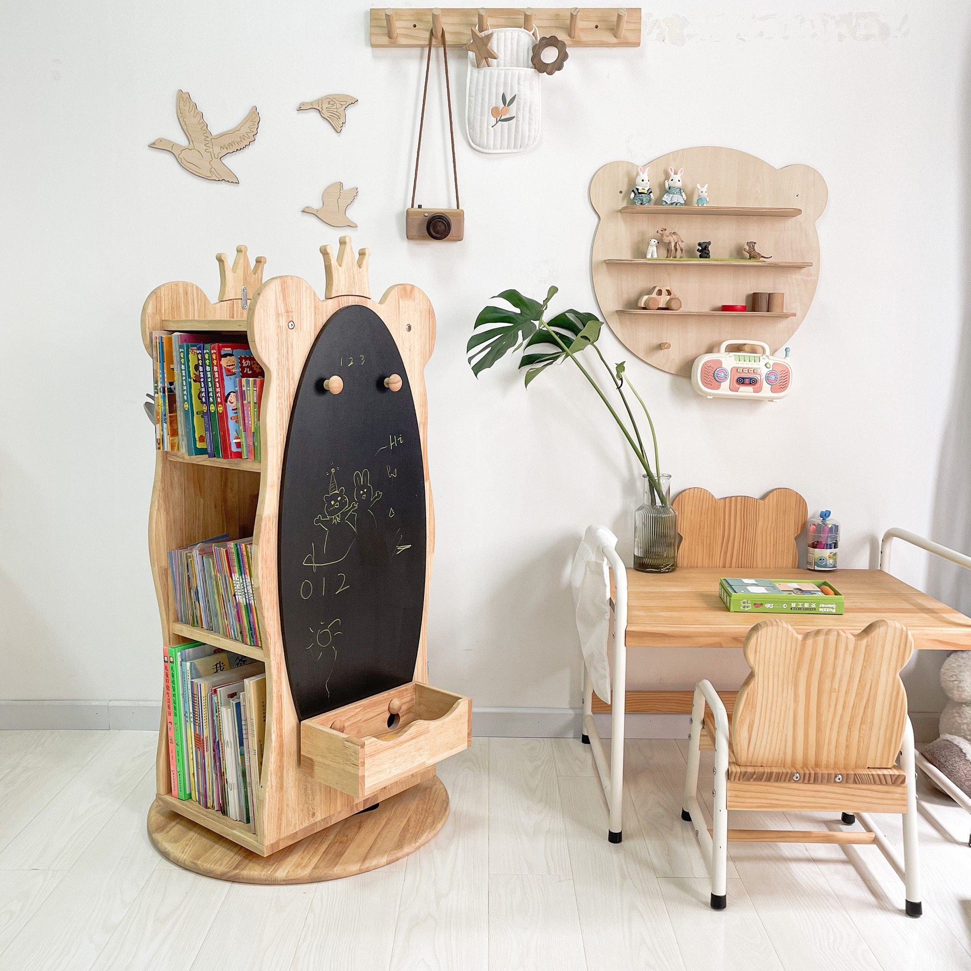 360度旋转熊儿童书架木质橡胶木多功能收纳书籍绘本落地储物柜热门设计联盟服务商
