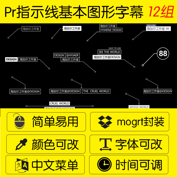 pr呼出指示线字幕条模板文字产品标注信息标题素材特效12组分左右热门设计联盟服务商